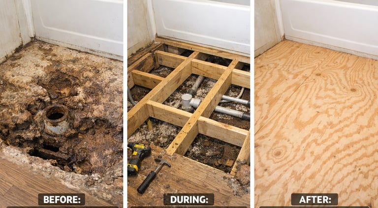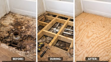 -Weak, damaged subfloors can be replaced with bracing & 3/4" plywood. Soft spots can be repaired from underneath, saving you money.